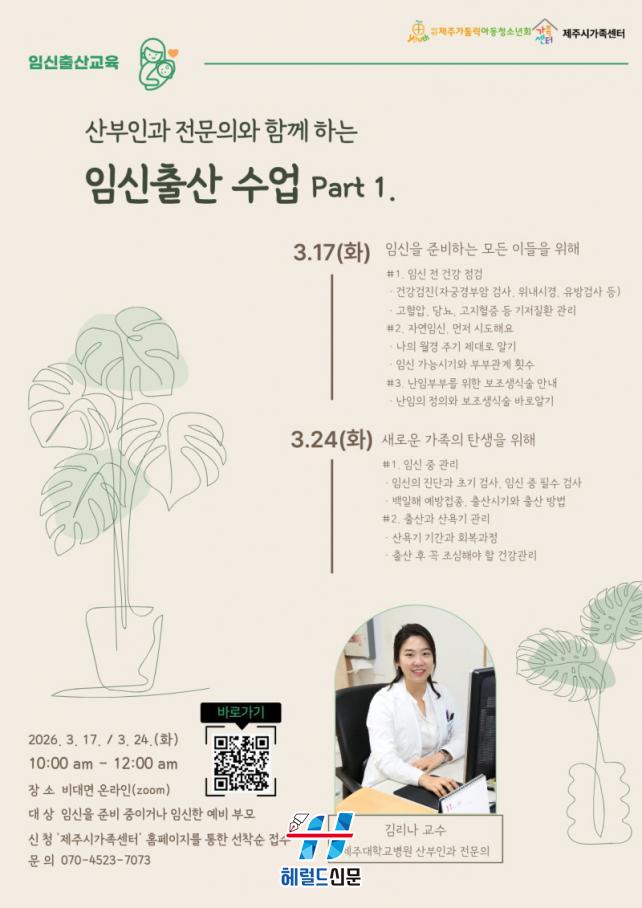 À̹ø ±³À°Àº Á¦ÁÖ´ëÇб³º´¿ø »êºÎÀΰú ±è¸®³ª ±³¼ö¸¦ ÃʺùÇØ ¿¹ºñ ºÎ¸ðµéÀÌ ±Ã±ÝÇØÇÒ ¼ö ÀÖ´Â ÀӽŠÁغñ ´Ü°èºÎÅÍ Ãâ»ê ÈÄ È¸º¹±îÁö Àü °úÁ¤À» ü°èÀûÀ¸·Î ´Ù·ê ¿¹Á¤ÀÌ´Ù.