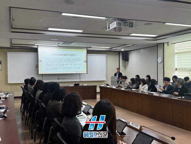[Çì·²µå½Å¹® = ³ë½Â¾ð ±âÀÚ] ¼±ÍÆ÷½Ã±³À°Áö¿øÃ»(±³À°Àå ±èÁöÇý)Àº Áö³ 3ÀÏ ±³À°Áö¿øÃ» ȸÀǽǿ¡¼ ¼±ÍÆ÷½Ã±³À°¹ßÀü±â±Ý °ü°èÀÚµé°ú °£´ãȸ¸¦ °¡Á³´Ù.