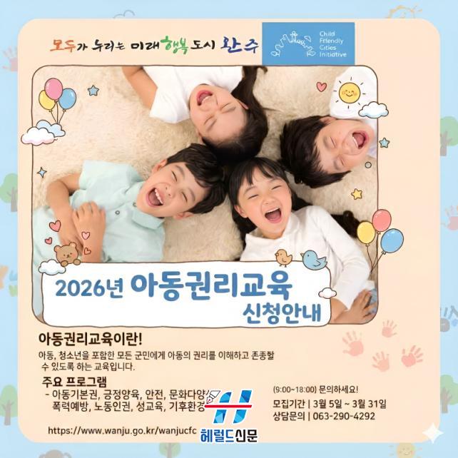 [Çì·²µå½Å¹® = ³ë½Â¾ð ±âÀÚ] ¿ÏÁÖ±º ¾Æµ¿¿ÈºÎÁîÆÛ½¼»ç¹«¼Ò°¡ Áö¿ª ³» ¸ðµç ¾Æµ¿ÀÌ Â÷º° ¾øÀÌ ±Ç¸®¸¦ Á¸Áß¹Þ´Â »çȸ¸¦ ¸¸µé±â À§ÇØ ¡®2026³â ã¾Æ°¡´Â ¾Æµ¿±Ç¸®±³À°¡¯À» º»°ÝÀûÀ¸·Î ½ÃÀÛÇÑ´Ù.