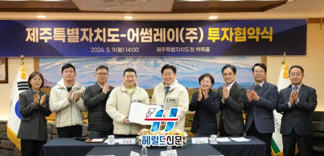 [Çì·²µå½Å¹® = ³ë½Â¾ð ±âÀÚ] Á¦ÁÖÆ¯º°ÀÚÄ¡µµ´Â 9ÀÏ µµÃ» ¹é·ÏȦ¿¡¼ ź¼Ò³ª³ëÆ©ºê(CNT) ±â¹Ý ÷´Ü ¼ÒÀç ±â¾÷ ¾î½æ·¹ÀÌ¢ß(´ëÇ¥ ±è¼¼ÈÆ)¿Í ÅõÀÚ ¹× Áö¿ª°æÁ¦ Ȱ¼ºÈ¸¦ À§ÇÑ ÅõÀÚÇù¾à(MOU)À» ü°áÇß´Ù.