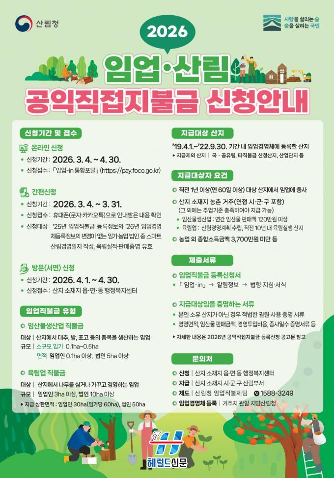 [Çì·²µå½Å¹® = ³ë½Â¾ð ±âÀÚ] °íÈﱺ(±º¼ö °ø¿µ¹Î)Àº ÀÓ¾÷¡¤»ê¸²ÀÇ °øÀͱâ´ÉÀ» ÁõÁøÇϰí ÀÓ¾÷ÀÎÀÇ ¼Òµæ ¾ÈÁ¤À» Áö¿øÇϱâ À§ÇØ ¡®2026³âµµ ÀÓ¾÷¡¤»ê¸² °øÀÍÁ÷Á¢ÁöºÒ±Ý(ÀÓ¾÷Á÷ºÒ±Ý)¡¯ µî·Ï ½ÅûÀ» 4¿ù 30ÀϱîÁö Á¢¼öÇÑ´Ù°í ¹àÇû´Ù.