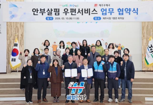 [Çì·²µå½Å¹® = ³ë½Â¾ð ±âÀÚ] Á¦Áֽô 3¿ù 10ÀÏ(È) ½Ãû 1º°°ü ȸÀǽǿ¡¼ Á¦ÁÖ¿ìü±¹(±¹Àå ¿À´Þ±Ô)°ú ¡®¾ÈºÎ»ìÇË ¿ìÆí¼ºñ½º¡¯ ¾÷¹« Çù¾àÀ» ü°áÇß´Ù.