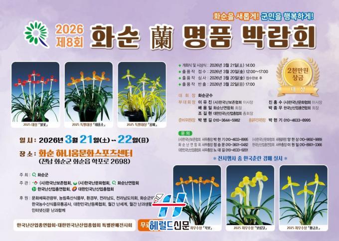 [Çì·²µå½Å¹® = ³ë½Â¾ð ±âÀÚ] Àü³² ȼø±º(±º¼ö ±¸º¹±Ô)Àº ¡®2026 Á¦8ȸ ȼø ³ ¸íǰ ¹Ú¶÷ȸ¡¯¸¦ ¿À´Â 3¿ù 21ÀÏ(Åä)ºÎÅÍ 22ÀÏ(ÀÏ)±îÁö ȼø ÇÏ´Ï¿ò¹®È½ºÆ÷Ã÷¼¾ÅÍ ½Ç³»Ã¼À°°ü¿¡¼ °³ÃÖÇÑ´Ù°í ¹àÇû´Ù.