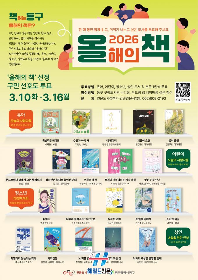 [Çì·²µå½Å¹® = Á¤µ·Ã¶ ±âÀÚ] ±¤ÁÖ µ¿±¸´Â ¡®2026 Ã¥ Àд µ¿±¸, ¿ÃÇØÀÇ Ã¥¡¯ ¼±Á¤À» À§ÇÑ ±¸¹Î ¼±È£µµ ÅõÇ¥¸¦ ¿À´Â 16ÀϱîÁö ½Ç½ÃÇÑ´Ù°í ¹àÇû´Ù.
