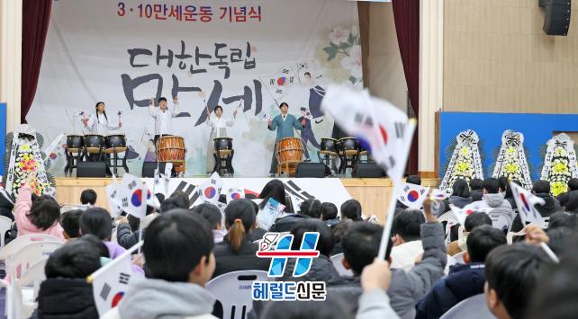 [Çì·²µå½Å¹® = ³ë½Â¾ð ±âÀÚ] ¡®Á¦107Áֳ⠿À¼ö 3.10¸¸¼¼ ±â³ä Çà»ç¡¯°¡ ¿À¼ö¸¦ »ç¶ûÇϴ û³âȸ(ȸÀå Àå¾çÃà) ÁÖ°üÀ¸·Î 3¿ù 10ÀÏ ÀӽDZº ¿À¼ö¸é ÀÏ´ë¿¡¼ ¼º´ëÇÏ°Ô ¿·È´Ù. À̹ø Çà»ç´Â 1919³â 3¿ù 10ÀÏ ´ç½Ã ¿À¼ö º¸ÅëÇб³ ÇлýµéÀÇ ¸¸¼¼ ¿îµ¿À» ±â¸®±â À§ÇØ ¸¶·ÃµÆÀ¸¸ç, 300¿©¸íÀÇ ÁֹεéÀÌ Âü¼®ÇÏ¿© ±×³¯ÀÇ Àǹ̸¦ µÇ»õ±â´Â ¶æ±íÀº ±â³ä½ÄÀÌ µÇ¾ú´Ù.