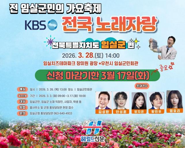 [Çì·²µå½Å¹® = ³ë½Â¾ð ±âÀÚ] ÀӽDZºÀÌ ¿À´Â 3¿ù 28ÀÏ °³ÃÖ ¿¹Á¤ÀΡ®KBS Àü±¹ ³ë·¡ÀÚ¶û ÀӽDZºÆí¡¯À» Àü ±º¹ÎÀÇ ÈÇÕÀÇ ÀåÀÌÀÚ °¡¿äÃàÁ¦·Î Áغñ¿¡ ¸¸ÀüÀ» ´ÙÇϰí ÀÖ´Ù.
