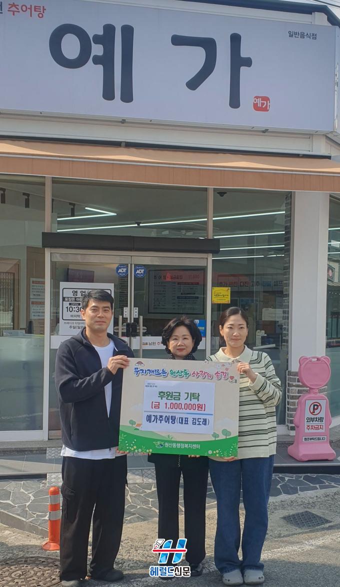 [Çì·²µå½Å¹® = ³ë½Â¾ð ±âÀÚ] ¿ø»êµ¿¿¡ À§Ä¡ÇÑ ¿¹°¡Ãß¾îÅÁ(´ëÇ¥ ±èµµ·¡)Àº Áö³ 9ÀÏ ¿ø»êµ¿ ÇàÁ¤º¹Áö¼¾ÅÍ¿¡ ÈÄ¿ø±Ý 100¸¸ ¿øÀ» ±âŹÇϸç Áö¿ª»çȸ¿¡ µû¶æÇÑ ³ª´®À» ÀüÇß´Ù.
