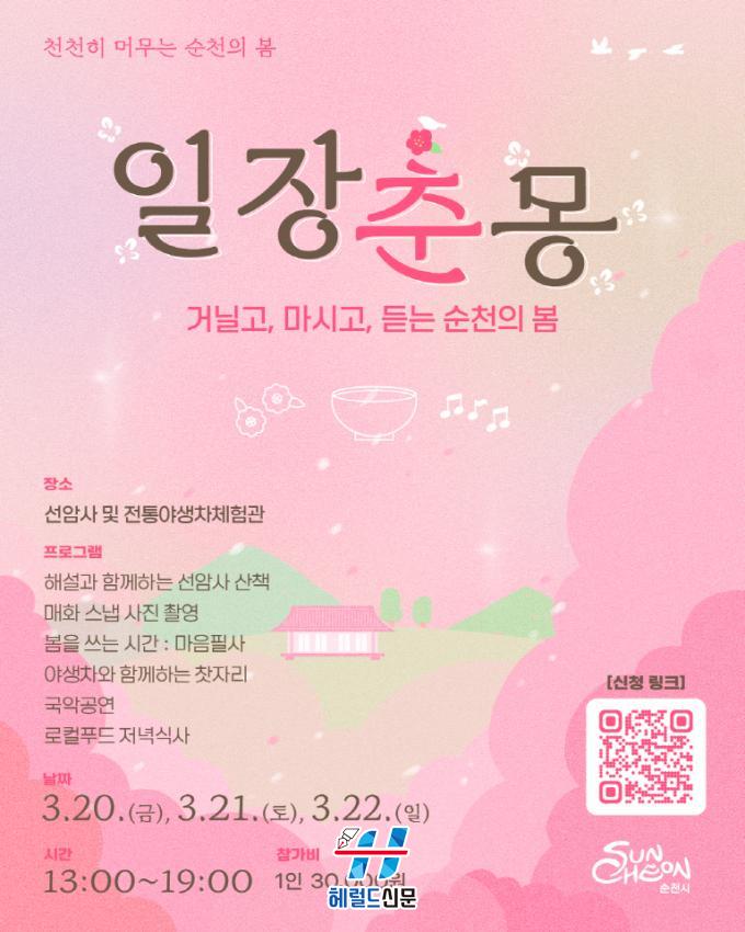 [Çì·²µå½Å¹® = ³ë½Â¾ð ±âÀÚ] ¼øÃµ½Ã´Â º½²ÉÀÌ ÇǾ´Â ½Ã±â¿¡ ¸ÂÃç, õ³â °íÂûÀÇ Á¤Ãë ¼Ó¿¡¼ È޽İú »ç»öÀ» Áñ±â´Â ÇÁ¸®¹Ì¾ö °¨¼º ÇÁ·Î±×·¥ ¡®ÀÏÀåÃá¸ù(ìéíÞõðÙÓ)¡¯À» ¿î¿µÇϰí Âü°¡ÀÚ¸¦ ¸ðÁýÇÑ´Ù°í ¹àÇû´Ù.