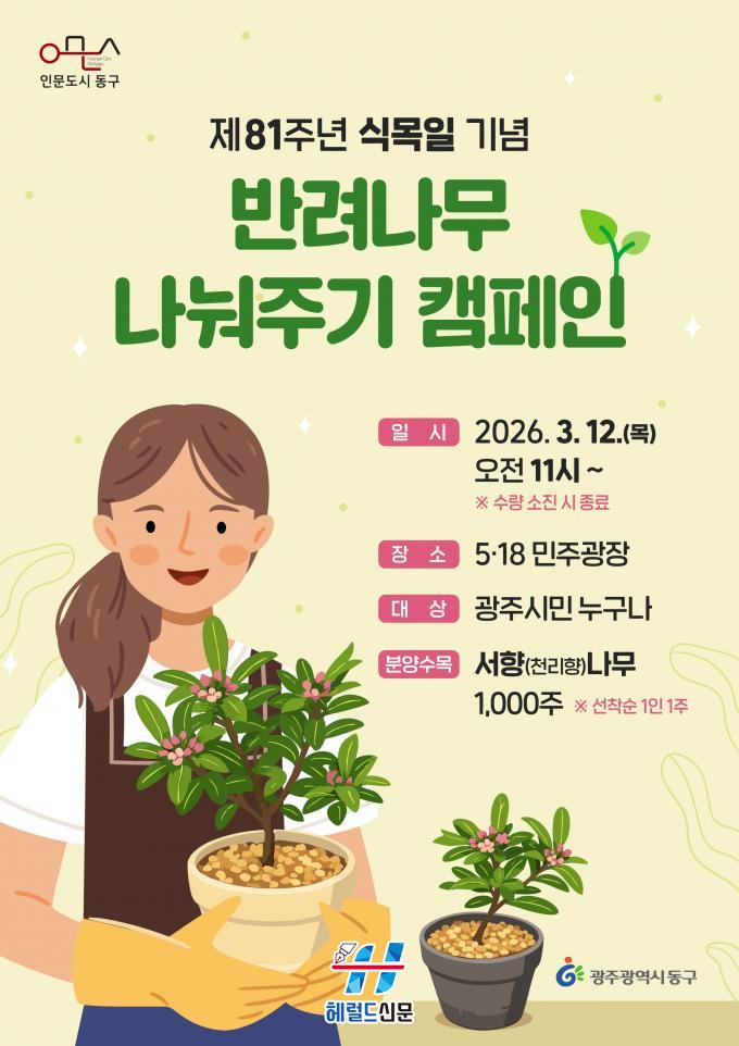 [Çì·²µå½Å¹® = Á¤µ·Ã¶ ±âÀÚ] ±¤ÁÖ µ¿±¸´Â Á¦81ȸ ½Ä¸ñÀÏÀ» ¾ÕµÎ°í ÁֹεéÀÌ Á÷Á¢ ³ª¹«¸¦ °¡²Ù¸ç »ýȰ ¼Ó ȯ°æº¸È£¸¦ ½ÇõÇÒ ¼ö ÀÖµµ·Ï ¿À´Â 12ÀÏ 5¡¤18¹ÎÁÖ±¤Àå¿¡¼ ¡®¹Ý·Á³ª¹« ³ª´²Áֱ⡯ Ä·ÆäÀÎÀ» °³ÃÖÇÑ´Ù°í ¹àÇû´Ù.