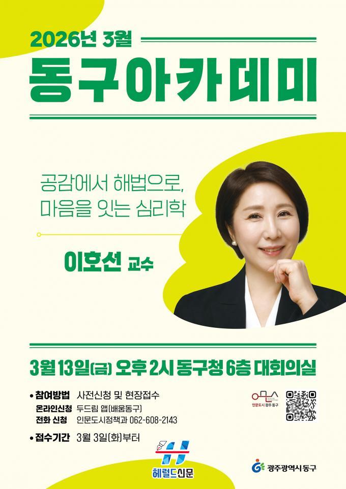 [Çì·²µå½Å¹® = Á¤µ·Ã¶ ±âÀÚ] ±¤ÁÖ µ¿±¸´Â ´ëÇ¥ Æò»ýÇнÀ ÇÁ·Î±×·¥ÀÎ ¡®2026³â µ¿±¸ ¾ÆÄ«µ¥¹Ì¡¯°¡ ¿À´Â 13ÀÏ ÀÌÈ£¼± ¼þ½Ç»çÀ̹ö´ëÇб³ ±³¼öÀÇ °¿¬À» ½ÃÀÛÀ¸·Î ¿ÃÇØ ù ¹®À» ¿¬´Ù°í ¹àÇû´Ù.