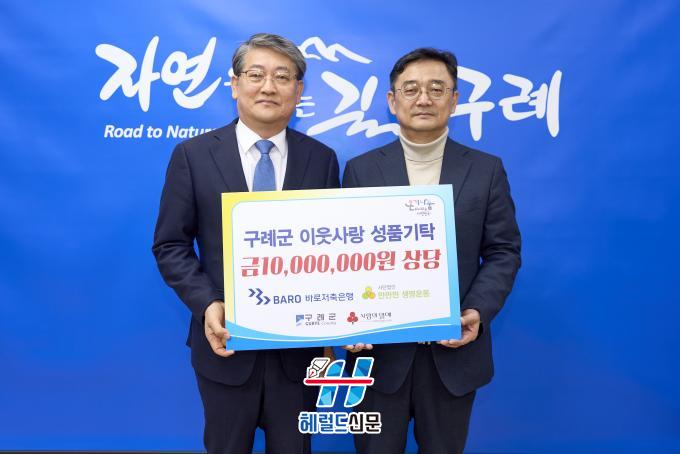 [Çì·²µå½Å¹® = ³ë½Â¾ð ±âÀÚ] Àü³² ±¸·Ê±ºÀº 3¿ù 11ÀÏ (ÁÖ)¹Ù·ÎÀúÃàÀºÇà¿¡¼ °ü³» Ãë¾à°èÃþÀ» À§ÇÑ 1õ¸¸ ¿ø »ó´ç ¹°Ç°À» ±âŹÇÏ´Â Àü´Þ½ÄÀ» °¡Á³´Ù°í ¹àÇû´Ù.