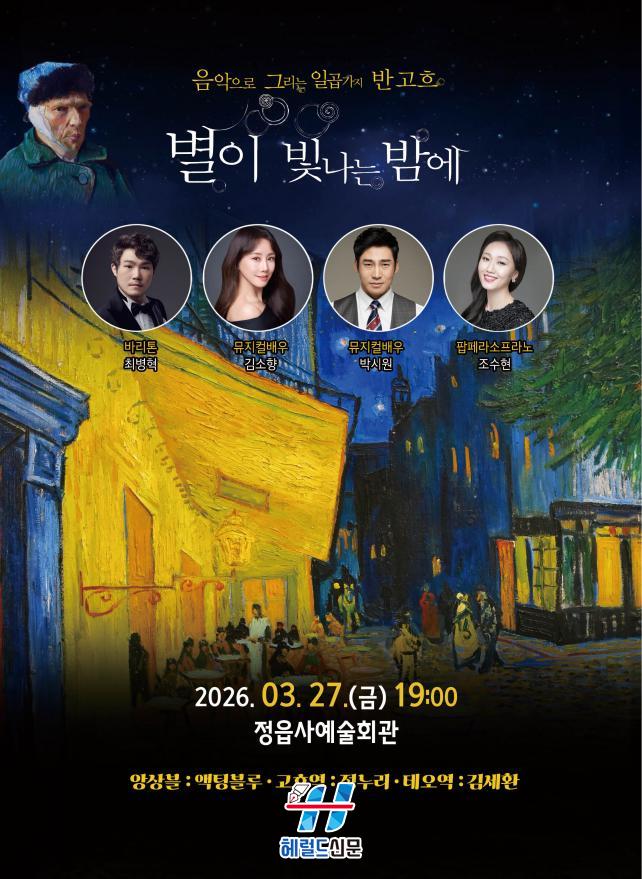 ¡®À½¾ÇÀ¸·Î ±×¸®´Â Àϰö °¡Áö ¹Ý °íÈå – º°ÀÌ ºû³ª´Â ¹ã¿¡¡¯¶ó´Â Á¦¸ñÀ¸·Î ¿¸®´Â À̹ø °ø¿¬Àº °íÈå¿Í ±×ÀÇ µ¿»ý Å׿À°¡ Æò»ý ÁÖ°í¹ÞÀº 668ÅëÀÇ ÆíÁö¸¦ ¹ÙÅÁÀ¸·Î ÇÑ ¿¬±â¿Í À½¾ÇÀÌ ¹«´ë À§¿¡¼ »ý»ýÇÏ°Ô ÆîÃÄÁø´Ù. ƯÈ÷ ¡®º°ÀÌ ºû³ª´Â ¹ã¡¯, ¡®¾Æ¸¦ Æ÷·ë ±¤ÀåÀÇ Ä«ÆäÅ׶󽺡¯, ¡®±î¸¶±Í°¡ ³ª´Â ¹Ð¹ç¡¯ µî °íÈåÀÇ ´ëÇ¥ÀûÀÎ ¸íÀÛµéÀ» Áß½ÉÀ¸·Î, ÀÛǰ¿¡ ¾ôÈù À̾߱â¿Í ´ç½ÃÀÇ ½Ã´ëÀû ¹è°æÀ» ´Ùä·Î¿î À½¾Ç°ú ÇÔ²² ¼Ò°³ÇÑ´Ù. ÀÌ¿Í µ¿½Ã¿¡ 2D¿Í 3D ¹Ìµð¾î¾ÆÆ® ¿µ»óÀÌ ¹«´ë Àüü¸¦ ä¿ì¸ç °íÈåÀÇ µ¶Ã¢ÀûÀÎ ÀÛǰ ¼¼°è¸¦ ¾ÐµµÀûÀÎ ½Ã°¢ È¿°ú·Î ±¸ÇöÇÒ ¿¹Á¤ÀÌ´Ù.
