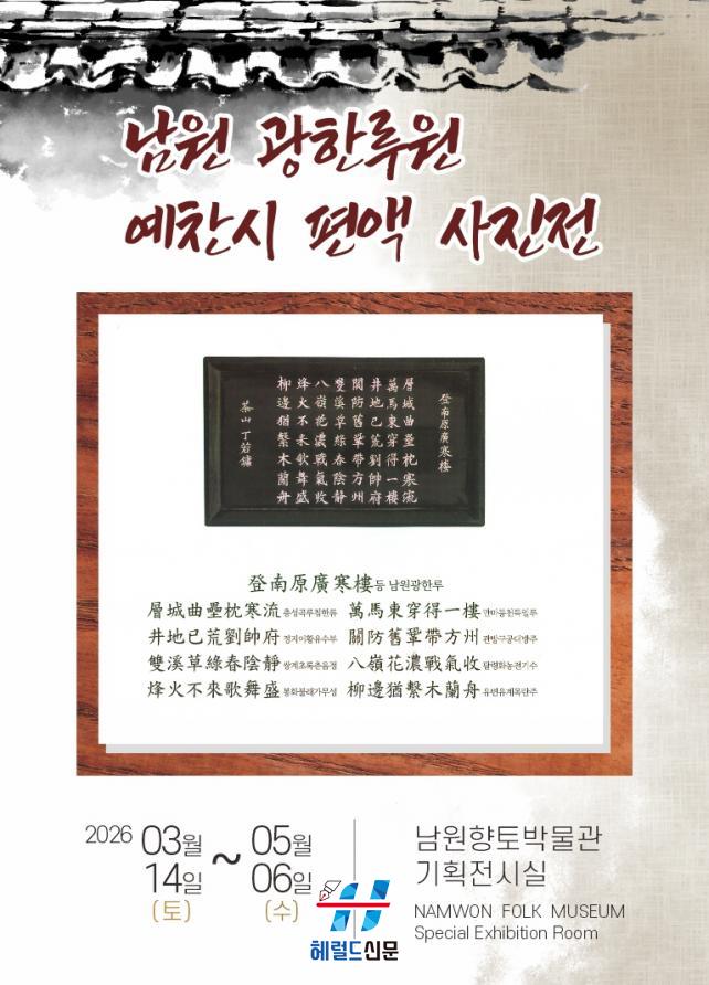 [Çì·²µå½Å¹® = ³ë½Â¾ð ±âÀÚ] ³²¿øÇâÅä¹Ú¹°°ü(³²¿ø½Ã ¾ç¸²±æ 14-9)ÀÌ 2026³â º½À» ¸Â¾Æ ³²¿øÀÇ »ó¡ÀÌÀÚ º¸¹°ÀÎ ±¤ÇÑ·çÀÇ ¹®ÈÀû °¡Ä¡¸¦ Á¶¸íÇϴ Ưº°ÇÑ Àü½Ã¸¦ ¼±º¸ÀδÙ.