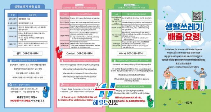³ªÁֽô ¸ÕÀú »ýȰÆó±â¹° ºÎÀûÁ¤ ¹èÃâÀ» ¿¹¹æÇϱâ À§ÇØ ³»±¹ÀÎ»Ó ¾Æ´Ï¶ó ¿Ü±¹ÀÎ °ÅÁÖÀÚ¸¦ ´ë»óÀ¸·Î »ýȰÆó±â¹° ¹èÃâ ¹æ¹ýÀ» ¾È³»ÇÏ´Â ´Ù±¹¾î È«º¸¹°À» Á¦ÀÛÇØ ¹èÆ÷Çß´Ù. ƯÈ÷ ¿Ü±¹ÀÎ °ÅÁÖ ºñÀ²ÀÌ ³ôÀº Áö¿ª°ú »ê¾÷´ÜÁö µîÀ» Áß½ÉÀ¸·Î È«º¸¸¦ °ÈÇØ ¿Ã¹Ù¸¥ »ýȰÆó±â¹° ¹èÃâ ¹®È Á¤ÂøÀ» À¯µµÇÒ °èȹÀÌ´Ù.