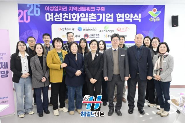 [Çì·²µå½Å¹® = ³ë½Â¾ð ±âÀÚ] ¼øÃ¢±ºÀº 12ÀÏ ¼øÃ¢±º °¡Á·¼¾ÅÍ¿¡¼ ¿©¼º Àη ä¿ë È®´ë¿Í ¿©¼º Ä£ÈÀûÀÎ ±Ù¹«È¯°æ Á¶¼ºÀ» À§ÇØ °ü³» 7°³ ±â¾÷°ú ¡®2026³â ¼øÃ¢±º ¿©¼ºÄ£ÈÀÏÃ̱â¾÷ Çù¾à½Ä¡¯À» °³ÃÖÇß´Ù.