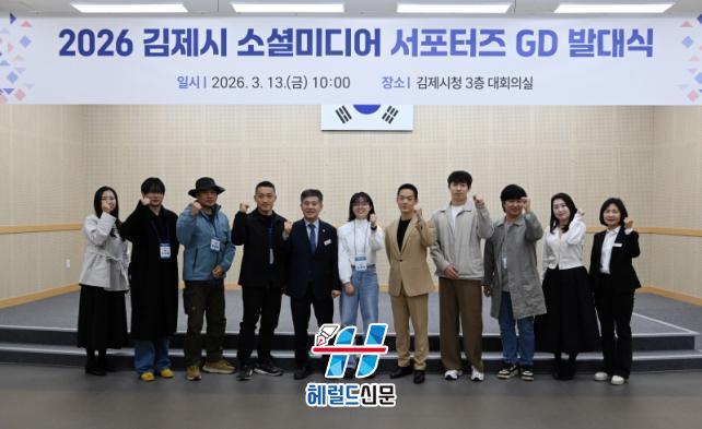 [Çì·²µå½Å¹® = ³ë½Â¾ð ±âÀÚ] ±èÁ¦½Ã°¡ ¼Ò¼È¹Ìµð¾î(SNS) È«º¸ °È¸¦ À§ÇØ Àü±¹ °¢Áö¿¡¼ ¼±¹ßµÈ Å©¸®¿¡ÀÌÅ͵é°ú ÇÔ²² 2026 ±èÁ¦½Ã ¼Ò¼È¹Ìµð¾î ¼Æ÷ÅÍÁî ¡®GD(Gimje Dreamers)¡¯ ¹ß´ë½ÄÀ» °³ÃÖÇÏ¸ç ´«±æÀ» ²ø°í ÀÖ´Ù.