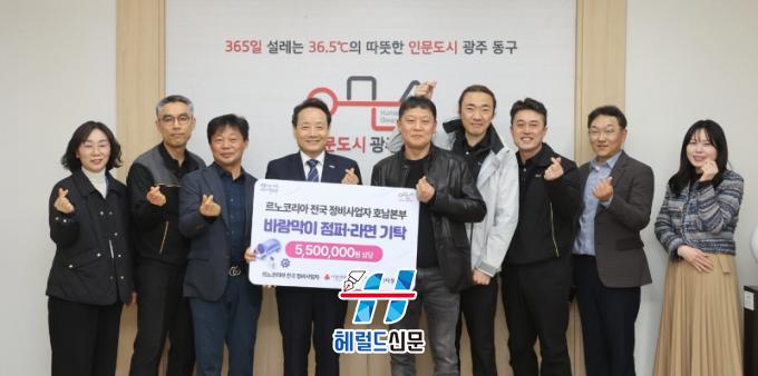[Çì·²µå½Å¹® = Á¤µ·Ã¶ ±âÀÚ] ±¤Áֽà µ¿±¸´Â ¸£³ëÄÚ¸®¾Æ Àü±¹ Á¤ºñ»ç¾÷ÀÚ È£³²º»ºÎ(º»ºÎÀå ÃÖÁß¼®)°¡ Áö³ 12ÀÏ ±¸Ã»¿¡¼ Áö¿ª³» µ¹º½ ÀÌ¿ôÀ» À§ÇØ 550¸¸ ¿ø »ó´çÀÇ ÈÄ¿ø ¹°Ç°À» Àü´ÞÇß´Ù°í ¹àÇû´Ù.