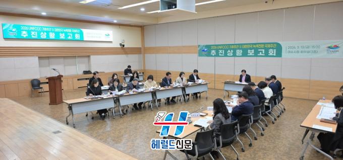 [Çì·²µå½Å¹® = ³ë½Â¾ð ±âÀÚ] ¿©¼ö½Ã´Â À¯¿£±âÈĺ¯ÈÇù¾à(UNFCCC) ±âÈÄÁÖ°£ Çà»ç¸¦ 40¿© ÀÏ ¾ÕµÐ 13ÀÏ Á¤Çö±¸ ½ÃÀå ±ÇÇÑ´ëÇà ÁÖÀç·Î ¡®À¯¿£±âÈĺ¯ÈÇù¾à ±âÈÄÁÖ°£ ¹× ´ëÇѹα¹ ³ì»öÀüȯ ±¹Á¦ÁÖ°£¡¯ ¼º°ø °³ÃÖ¸¦ À§ÇÑ ºÎ¼º° ÃßÁø»óȲ º¸°íȸ¸¦ °³ÃÖÇß´Ù°í ¹àÇû´Ù.