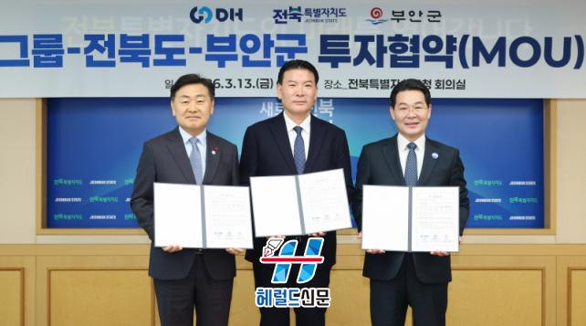 µµ´Â 13ÀÏ µµÃ»¿¡¼ DH±×·ì°ú ºÎ¾È Á¦3³ó°ø´ÜÁö(ÅõÀÚ ¸éÀû 10¸¸ 1,836§³) ÀÏ¿ø¿¡ ÇÇÁöÄÃAI¡¤¹æ»ê¡¤¼ö¼Ò »ê¾÷ Á¦Á¶±âÁö¸¦ Á¶¼ºÇÏ´Â ³»¿ëÀÇ ÅõÀÚÇù¾à(MOU)À» ü°áÇß´Ù. Çù¾à½Ä¿¡´Â ±è°ü¿µ ÀüºÏÀÚÄ¡µµÁö»ç¿Í ÀÌÁ¤±Ç DH±×·ì ȸÀå, ±ÇÀÍÇö ºÎ¾È±º¼ö µîÀÌ Âü¼®ÇßÀ¸¸ç, Çù¾à ü°á ÈÄ Áö¿ª »ó»ý Çù·Â ¹æ¾È¿¡ ´ëÇÑ ÀǰßÀ» ³ª´³´Ù.