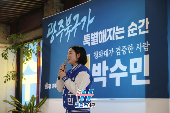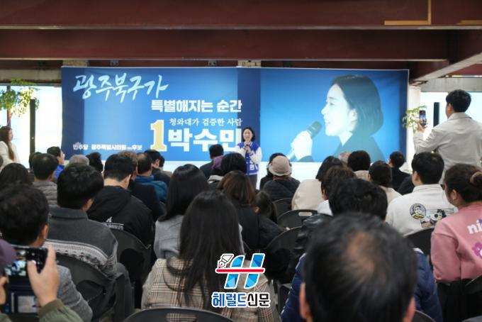 [Çì·²µå½Å¹® = ³ë½Â¾ð ±âÀÚ] ´õºÒ¾î¹ÎÁÖ´ç ¹Ú¼ö¹Î ±¤ÁÖÆ¯º°½ÃÀÇ¿ø ¿¹ºñÈĺ¸(±¤ÁÖ ºÏ±¸ Á¦3¼±°Å±¸)°¡ 15ÀÏ ¿ÀÈÄ 1½Ã, ¼±°Å»ç¹«¼Ò °³¼Ò½ÄÀ» ¿°í º»°ÝÀûÀÎ ¼¼¸ôÀÌ¿¡ ³ª¼¹´Ù. À̳¯ °³¼Ò½Ä¿¡´Â Áö¿ª Áֹΰú ÁöÁöÀÚ µî ¾à 500¿© ¸íÀÌ Âü¼®ÇØ ¹Ú ¿¹ºñÈ常¦ ÇâÇÑ ¶ß°Å¿î °ü½ÉÀ» ÀÔÁõÇÏ¸ç ¼ºÈ²¸®¿¡ ¸¶¹«¸®µÆ´Ù.