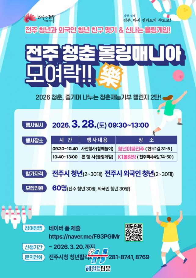 Âü¿©¸¦ Èñ¸ÁÇϴ û³âÀº ¿À´Â 20ÀϱîÁö ¿Â¶óÀÎÀ¸·Î Á¢¼öÇÏ¸é µÇ¸ç, ½Åû ¹æ¹ý µî ±âŸ ÀÚ¼¼ÇÑ »çÇ×Àº ÀüÁֽà û³âÇ÷§ÆûÀÎ ¡®Ã»Á¤Áö´ë¡¯(youth.jeonju.go.kr)¸¦ ÅëÇØ È®ÀÎÇÏ¸é µÈ´Ù.