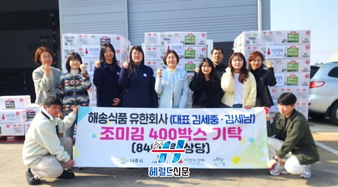 [Çì·²µå½Å¹® = ³ë½Â¾ð ±âÀÚ] ³ªÁÖ½Ã´Â ÇØ¼Û½Äǰ À¯ÇÑȸ»ç(´ëÇ¥ ±è¼¼Áß, ±è¼¼³²)°¡ 17ÀÏ °ü³» Ãë¾à°èÃþÀ» À§ÇØ Á¶¹Ì±è 400¹Ú½º(840¸¸ ¿ø »ó´ç)¸¦ ±âŹÇß´Ù°í ¹àÇû´Ù.