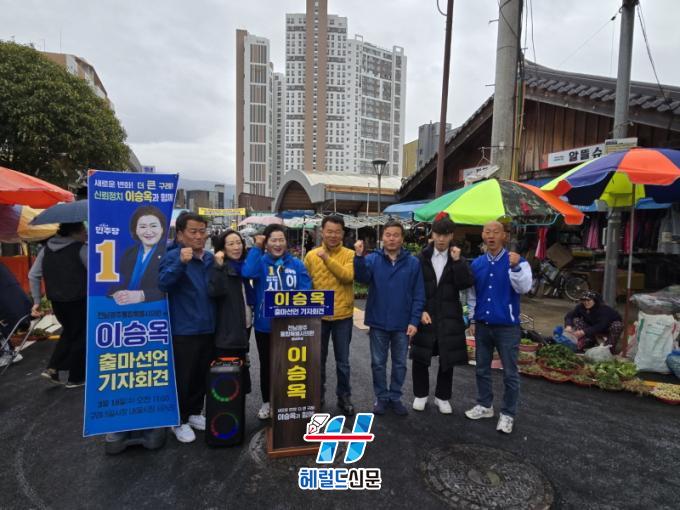 [Çì·²µå½Å¹® = ³ë½Â¾ð ±âÀÚ] Àü³²¡¤±¤ÁÖ ÅëÇÕÆ¯º°½ÃÀÇ¿ø ¼±°Å¿¡ ³ª¼± À̽¿Á ¿¹ºñÈĺ¸(Àü ±¸·Ê±ºÀÇȸ ºÎÀÇÀå)°¡ 18ÀÏ ¡®»ó°øÀÇ ³¯¡¯À» ¸Â¾Æ ±¸·Ê ¹Î»ý °æÁ¦ÀÇ ÇöÀåÀÎ ±¸·Ê 5ÀÏ ½ÃÀå(²É½ÃÀå »ç°Å¸®)¿¡¼ Ã⸶ ±âÀÚȸ°ßÀ» ¿°í °ø½Ä Ã⸶¸¦ ¼±¾ðÇß´Ù.