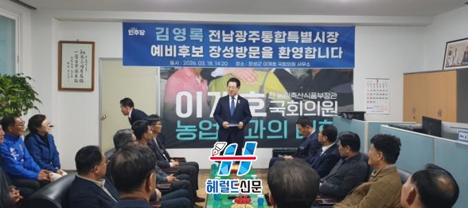 [Çì·²µå½Å¹® = ³ë½Â¾ð ±âÀÚ] ±è¿µ·Ï ¹ÎÁÖ´ç Àü³²±¤ÁÖÆ¯º°½ÃÀå ¿¹ºñÈ帰¡ 18ÀÏ ´ã¾ç, À强, ¿µ±¤, ÇÔÆò µî Áö¸¦ ÀÕµû¶ó ¹æ¹®ÇØ ÁöÁö¼¼ È®»ê¿¡ ³ª¼¹´Ù.