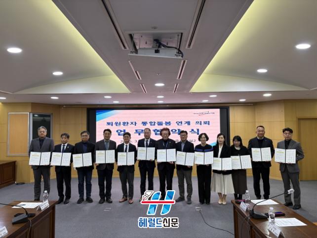 À̹ø Çù¾àÀº º´¿ø Ä¡·á¸¦ ¸¶Ä£ ȯÀÚ°¡ Åð¿ø ÀÌÈÄ Áö¿ª»çȸ¿¡¼ ¾ÈÁ¤ÀûÀ¸·Î »ýȰÇÒ ¼ö ÀÖµµ·Ï ÀǷᡤµ¹º½¡¤º¹Áö ¼ºñ½º¸¦ ¿¬°èÇÏ´Â Çù·Âü°è¸¦ ±¸ÃàÇϱâ À§ÇØ ¸¶·ÃµÆ´Ù.
