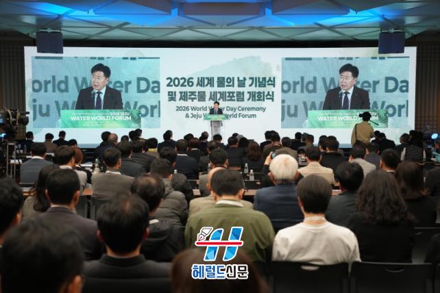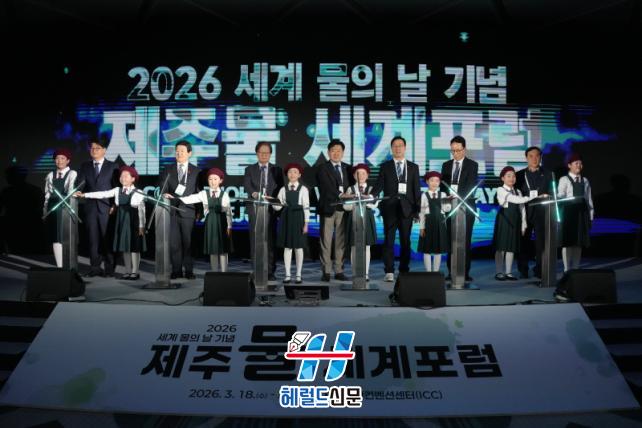 [Çì·²µå½Å¹® = ³ë½Â¾ð ±âÀÚ] Á¦ÁÖÆ¯º°ÀÚÄ¡µµ¿Í Á¦ÁÖ°³¹ß°ø»ç´Â 18ÀÏ Á¦ÁÖ±¹Á¦ÄÁº¥¼Ç¼¾ÅÍ(ICC)¿¡¼ ¡®2026 ¼¼°è ¹°ÀÇ ³¯ ±â³ä½Ä ¹× Á¦ÁÖ¹° ¼¼°èÆ÷·³¡¯À» ¿°í, ±âÈÄÀ§±â ½Ã´ë Á¦ÁÖ°¡ ³ª¾Æ°¥ Áö¼Ó°¡´ÉÇÑ ¹° °ü¸® ¸ðµ¨ÀÇ Ã»»çÁøÀ» Á¦½ÃÇß´Ù.