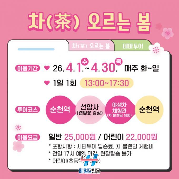 [Çì·²µå½Å¹® = ³ë½Â¾ð ±âÀÚ] ¼øÃµ½Ã´Â ¼±¾Ï»çÀÇ °ãº¢²ÉÀÌ °¡Àå È·ÁÇÏ°Ô ÇǾ´Â 4¿ù ÇÑ ´Þ°£, ¼øÃµÀÇ ´«ºÎ½Å º½ dz°æ°ú ÀüÅë Â÷(Òþ) ¹®È¸¦ °áÇÕÇÑ ±âȹ Åõ¾î ¡®Â÷(Òþ)¿À¸£´Â º½¡¯À» ¿î¿µÇÑ´Ù°í ¹àÇû´Ù.