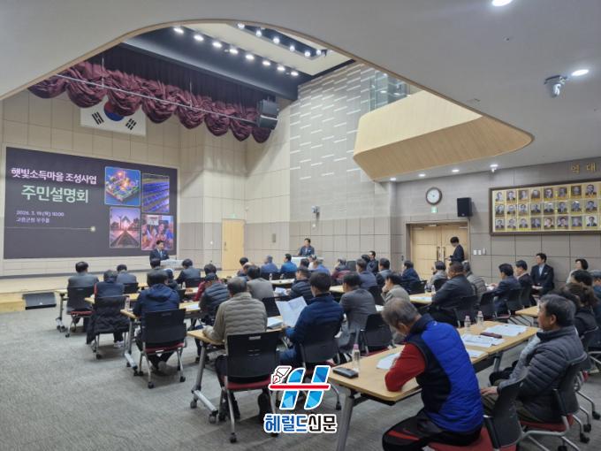 [Çì·²µå½Å¹® = ³ë½Â¾ð ±âÀÚ] °íÈﱺ(±º¼ö °ø¿µ¹Î)Àº Áö³ 19ÀÏ ±ºÃ» ¿ìÁÖȦ¿¡¼ ÇÞºû¼Òµæ¸¶À» Á¶¼ºÀ» Èñ¸ÁÇÏ´Â ¸¶À» ÀÌÀå°ú ÁֹΠ80¿© ¸íÀÌ Âü¼®ÇÑ °¡¿îµ¥ ¡®ÇÞºû¼Òµæ¸¶À» Á¶¼º »ç¾÷¡¯ ÁֹΠ¼³¸íȸ¸¦ °³ÃÖÇß´Ù°í ¹àÇû´Ù.
