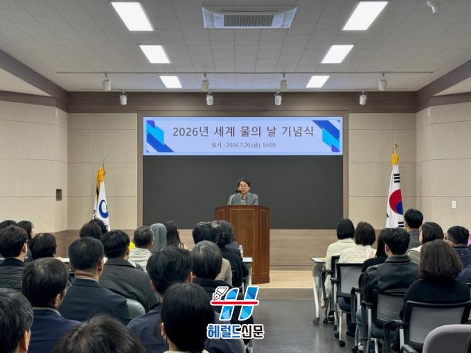[Çì·²µå½Å¹® = ³ë½Â¾ð ±âÀÚ] ±¤ÁÖ±¤¿ª½Ã(½ÃÀå °±âÁ¤)´Â ¡®¼¼°è ¹°ÀÇ ³¯¡¯À» ¸Â¾Æ 20ÀÏ ±¤ÁÖȯ°æ°ø´Ü ´ëȸÀǽǿ¡¼ 5°³ ÀÚÄ¡±¸, ±¤ÁÖȯ°æ°ø´Ü °ü°èÀÚ µî 100¿© ¸íÀÌ Âü¼®ÇÑ °¡¿îµ¥ ¡®2026³â ¼¼°è ¹°ÀÇ ³¯ ±â³äÇà»ç¡¯¸¦ °³ÃÖÇß´Ù.