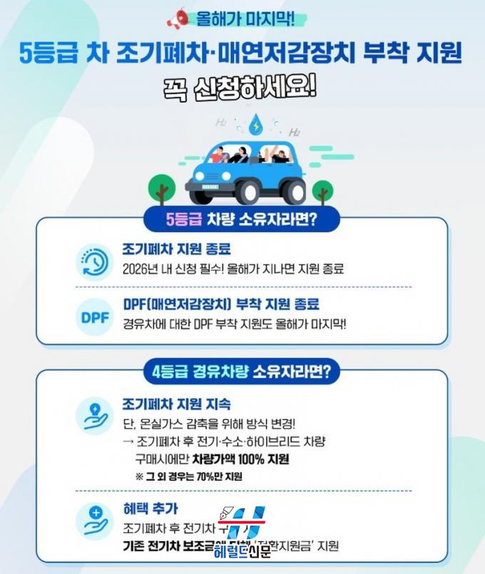 ¶ÇÇÑ ¹èÃâ°¡½º 5µî±Þ °æÀ¯Â÷¿¡ ¸Å¿¬ Àú°¨ÀåÄ¡(DPF)¸¦ ¼³Ä¡ÇÏ¸é ¼³Ä¡ºñÀÇ ¾à 90%¸¦ Áö¿øÇϸç, °Ç¼³±â°è(´ýÇÁÆ®·°) ¸Å¿¬ Àú°¨ÀåÄ¡ ¼³Ä¡¿Í Áö°ÔÂ÷¡¤±¼»è±â¡¤·Ñ·¯¡¤·Î´õ ¿£Áø ±³Ã¼ ºñ¿ëÀº Àü¾× Áö¿øÇÑ´Ù.