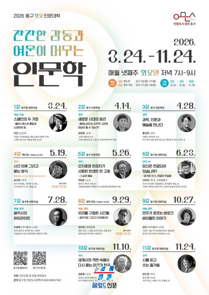 [Çì·²µå½Å¹® = Á¤µ·Ã¶ ±âÀÚ] ±¤ÁÖ µ¿±¸´Â ¡®ÀÜÀÜÇÑ °¨µ¿°ú ¿©¿îÀÌ ¸Ó¹«´Â Àι®ÇС¯À» ÁÖÁ¦·Î ¿¹¼ú, öÇÐ, ¿ª»ç, ¹®ÇÐ µî °¢ ºÐ¾ßÀÇ ¸í¸Á ÀÖ´Â °»çµéÀ» ÃÊÃ»ÇØ ÁøÇàÇÏ´Â ¡®µ¿±¸ È¿ä Àι®´ëÇС¯À» 24ÀÏ °³°ÇÑ´Ù°í ¹àÇû´Ù.