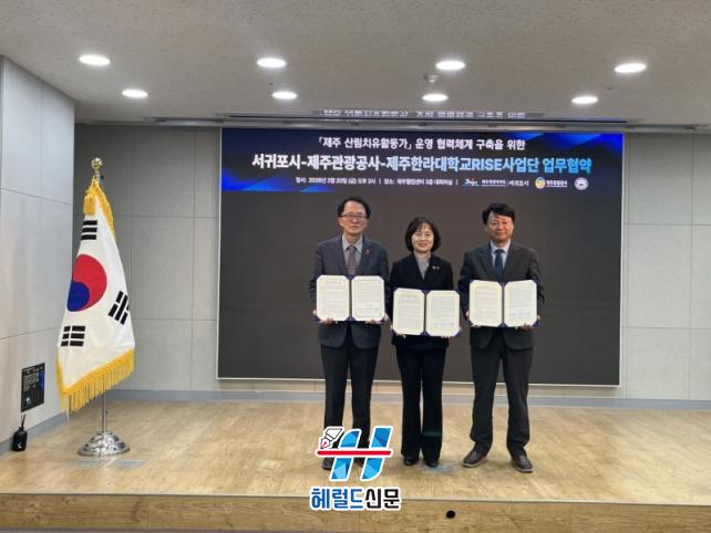 ¼±ÍÆ÷½Ã °ü°èÀÚ´Â ¡°À̹ø Çù¾àÀº Á¦ÁÖ°¡ °¡Áø ½£°ú Ä¡À¯ ÀÚ¿øÀ» Ȱ¿ëÇØ Àü¹® ÀηÂÀ» ¾ç¼ºÇϰí, »ê¸²º¹Áö ÄÜÅÙÃ÷ÀÇ °æÀï·ÂÀ» ³ôÀÌ´Â Áß¿äÇÑ °è±â°¡ µÉ °Í¡±À̶ó¸ç ¡°°ü±¤¡¤Ä¡À¯¡¤±³À°ÀÌ ¾î¿ì·¯Áø »õ·Î¿î ¸ðµ¨À» ÅëÇØ Á¦ÁÖ°¡ ³ª¾Æ°¡¾ß ÇÒ Áö¼Ó°¡´ÉÇÑ Ä¡À¯ ºñÀüÀ» ½ÇÇöÇØ ³ª°¡°Ú´Ù¡±¶ó°í ¸»Çß´Ù.