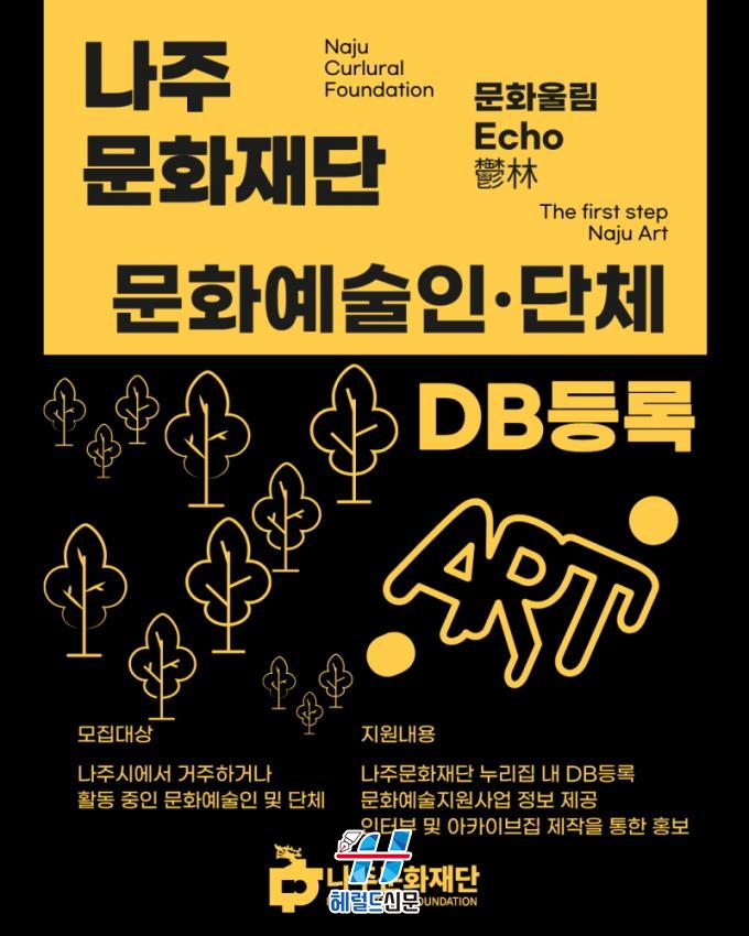 [Çì·²µå½Å¹® = ³ë½Â¾ð ±âÀÚ] ³ªÁÖ¹®ÈÀç´Ü(´ëÇ¥ÀÌ»ç ±èÂùµ¿, ÀÌÇÏ Àç´Ü)ÀÌ Áö¿ª ¿¹¼úÀΰú ¿¹¼ú´ÜüÀÇ È°µ¿ Á¤º¸¸¦ ü°èÀûÀ¸·Î °ü¸®ÇÏ°í ¹®È¿¹¼ú Áö¿ø ±â¹ÝÀ» °ÈÇϱâ À§ÇØ ÅëÇÕ µ¥ÀÌÅͺ£À̽º ±¸Ãà¿¡ ³ª¼¹´Ù.