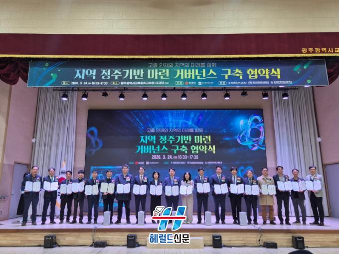 [Çì·²µå½Å¹® = ³ë½Â¾ð ±âÀÚ] ±¤ÁÖ±¤¿ª½Ã¿Í ±¤ÁÖ±¤¿ª½Ã±³À°Ã»Àº 24ÀÏ ½Ã±³À°Ã» AI±³À°¿ø ´ë°´ç¿¡¼ ¡®°íÁ¹ ÀÎÀç¿Í Áö¿ªÀÇ ¹Ì·¡¸¦ ÇÔ²², Áö¿ª Á¤ÁÖ±â¹Ý ¸¶·Ã °Å¹ö³Í½º ±¸Ãà Çù¾à½Ä¡¯À» °³ÃÖÇß´Ù.