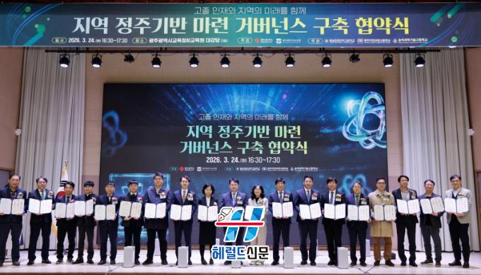 [Çì·²µå½Å¹® = ³ë½Â¾ð ±âÀÚ] ±¤Áֽñ³À°Ã»(±³À°°¨ ÀÌÁ¤¼±)°ú ±¤Áֽô 24ÀÏ ±¤ÁÖAI±³À°¿ø ´ë°´ç¿¡¼ ÀÌÁ¤¼± ±¤Áֽñ³À°°¨, ±è±â¼÷ ±¤Áֽà ±³À°Ã»³â±¹Àå µîÀÌ Âü¼®ÇÑ °¡¿îµ¥ ¡®°íÁ¹ ÀÎÀç¿Í Áö¿ªÀÇ ¹Ì·¡¸¦ ÇÔ²², Áö¿ª Á¤ÁÖ±â¹Ý ¸¶·Ã °Å¹ö³Í½º ±¸Ãà Çù¾à½Ä¡¯À» °³ÃÖÇß´Ù.