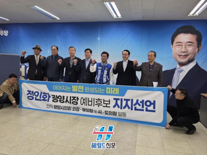 [Çì·²µå½Å¹® = ³ë½Â¾ð ±âÀÚ] ±¤¾ç½ÃÀÇȸ ÀüÁ÷ ÀÇÀå°ú ºÎÀÇÀå, ½Ã¡¤µµÀÇ¿ø µî 11ÀÎÀº 25ÀÏ ¿ÀÀü 10½Ã Á¤ÀÎÈ ±¤¾ç½ÃÀå ¿¹ºñÈĺ¸ ¼±°Å»ç¹«¼Ò 3Ãþ¿¡¼ Á¤ÀÎÈ ¿¹ºñÈĺ¸¿¡ ´ëÇÑ ÁöÁö¸¦ °ø½Ä ¼±¾ðÇß´Ù.