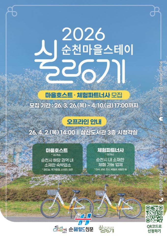 [Çì·²µå½Å¹® = ³ë½Â¾ð ±âÀÚ] ¼øÃµ½Ã´Â ¡¸2026 ¼øÃµ¸¶À»½ºÅ×ÀÌ ½¯¶û°Ô V2.0¡¹¿¡ Âü¿©ÇÒ ¸¶À» È£½ºÆ®¿Í üÇèÆÄÆ®³Ê»ç¸¦ ¿À´Â 4¿ù 10ÀϱîÁö ¸ðÁýÇÑ´Ù°í ¹àÇû´Ù.