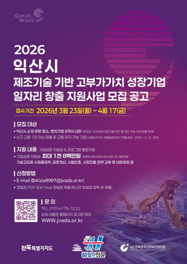 ÀÍ»ê½Ã´Â Áö¿ªÀÇ À¯¸ÁÇÑ ±â¾÷µéÀÌ ½º½º·Î ¼ºÀåÇÒ ¼ö ÀÖ´Â ÈûÀ» ±â¸£°í, ±× °á½ÇÀÌ ½Å±Ô °í¿ëÀ¸·Î À̾îÁö´Â ¼±¼øÈ¯ ±¸Á¶¸¦ ¸¸µé±â À§ÇØ Âü¿© ±â¾÷À» ¸ðÁýÇÑ´Ù°í 27ÀÏ ¹àÇû´Ù. ´Ü¼øÇÑ ÀÏÀÚ¸®°¡ ¾Æ´Ï¶ó °íµµÈÇÑ ±â¼ú·Â°ú Áö½ÄÀ» ¹ÙÅÁÀ¸·Î ´õ ¸¹Àº ÀÌÀÍÀ» ¸¸µé¾î³»´Â ¾çÁúÀÇ ÀÏÀÚ¸®¸¦ È®»êÇÏ´Â °ÍÀÌ ¸ñÇ¥´Ù.