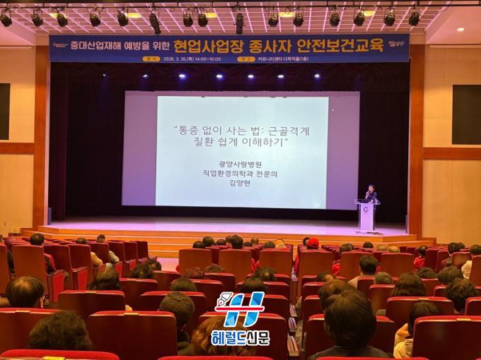 [Çì·²µå½Å¹® = ³ë½Â¾ð ±âÀÚ] ±¤¾ç½Ã´Â Çö¾÷»ç¾÷Àå Á¾»çÀÚÀÇ °Ç°°ü¸® ¿ª·®À» °ÈÇϰí Áß´ë»ê¾÷ÀçÇØ¸¦ ¿¹¹æÇϱâ À§ÇØ Áö³ 3¿ù 26ÀÏ Ä¿¹Â´ÏƼ¼¾ÅÍ ´Ù¸ñÀûȦ¿¡¼ Á¾»çÀÚ 200¿© ¸íÀ» ´ë»óÀ¸·Î ¡¸Çö¾÷»ç¾÷Àå Á¾»çÀÚ ¾ÈÀüº¸°Ç±³À°¡¹À» ½Ç½ÃÇß´Ù°í ¹àÇû´Ù.