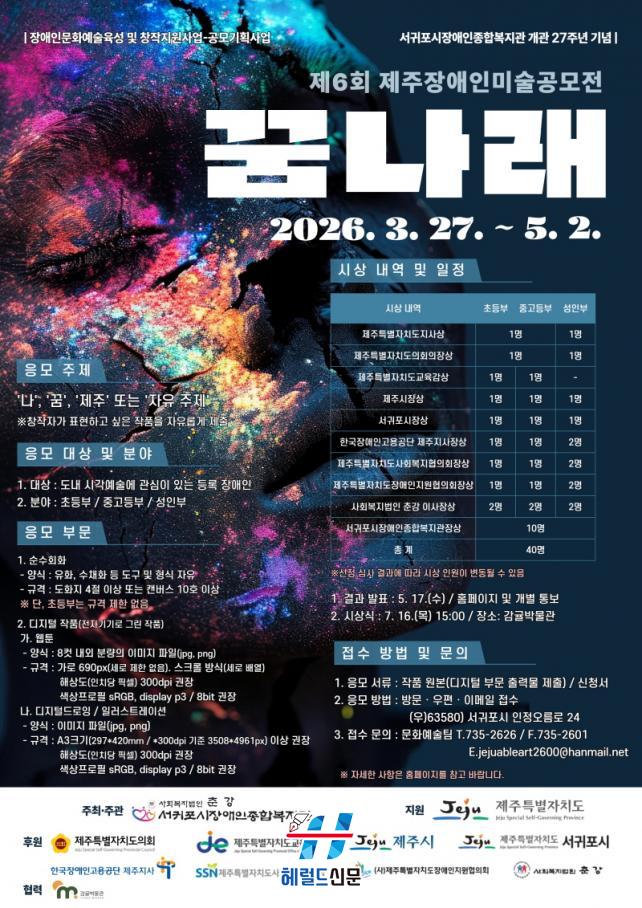 [Çì·²µå½Å¹® = ³ë½Â¾ð ±âÀÚ] ¼±ÍÆ÷½ÃÀå¾ÖÀÎÁ¾ÇÕº¹Áö°ü(°üÀå À±º¸Ã¶)Àº °³°ü 27ÁÖ³âÀ» ¸ÂÀÌÇÏ¿© ¡®Á¦6ȸ Á¦ÁÖÀå¾ÖÀÎ ¹Ì¼ú°ø¸ðÀü – ²Þ³ª·¡¡¯(ÀÌÇÏ ²Þ³ª·¡)¸¦ °³ÃÖÇÑ´Ù.