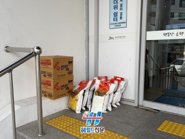[Çì·²µå½Å¹® = ³ë½Â¾ð ±âÀÚ] Áö³ 27ÀÏ(¼ö) ³ëÇüµ¿Áֹμ¾ÅÍ(µ¿Àå °í±¤¼ö) ¾Õ¿¡´Â ¡°ÀÛÁö¸¸ ²À ÇÊ¿äÇÑ ºÐµé²² ³ª´©¾î ´Þ¶ó¡±´Â ÆíÁö¿Í ÇÔ²² ¶ó¸é 2¹Ú½º, ½Ò(5kg) 10Æ÷´ë°¡ Àü´ÞµÆ´Ù.