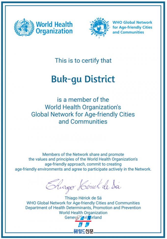 29ÀÏ ºÏ±¸´Â ¼¼°èº¸°Ç±â±¸(WHO) °í·Éģȵµ½Ã ±¹Á¦³×Æ®¿öÅ© Á¦2±â µµ½Ã·Î ÀÎÁõ¹Þ¾Ò´Ù°í ¹àÇû´Ù.