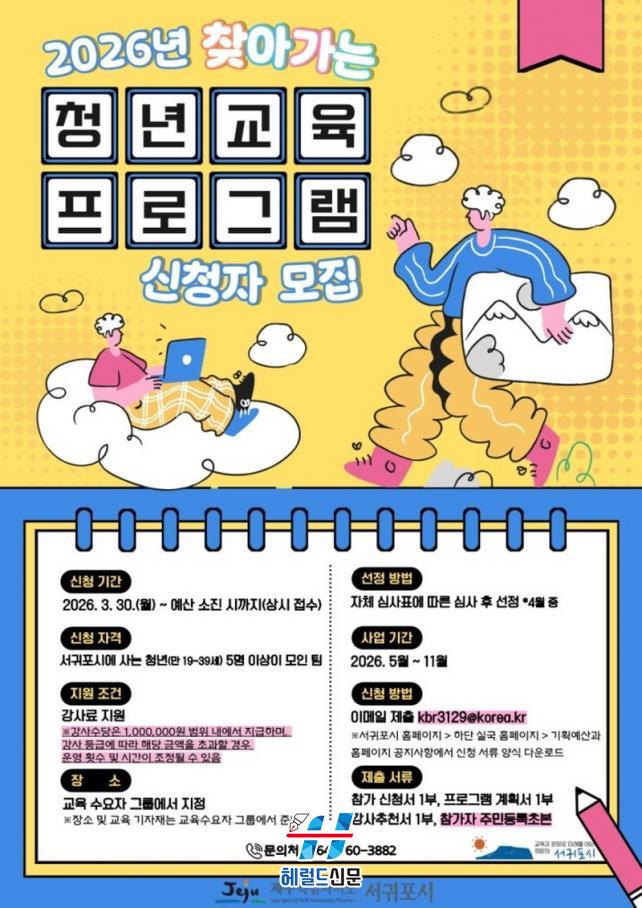 [Çì·²µå½Å¹® = ³ë½Â¾ð ±âÀÚ] ¼±ÍÆ÷½Ã´Â Áö³ 30ÀϺÎÅÍ ¿¹»ê ¼ÒÁø ½Ã±îÁö¡®2026³â ã¾Æ°¡´Â û³â±³À°¡¯ ÇÁ·Î±×·¥ Âü¿©ÀÚ¸¦ »ó½Ã ¸ðÁýÇÑ´Ù°í ¹àÇû´Ù.