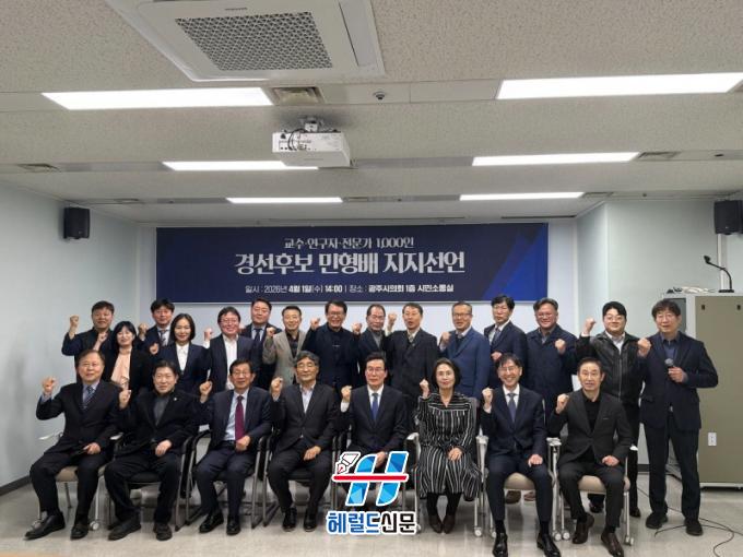 [Çì·²µå½Å¹® = ³ë½Â¾ð ±âÀÚ] Àü³²¡¤±¤ÁÖ Áö¿ª ´ëÇб³¼ö¿Í ¿¬±¸ÀÚ, Àü¹®°¡ 1000¸íÀÌ 40³â ¸¸¿¡ ¸ÂÀÌÇÏ´Â ÇàÁ¤ ÅëÇÕÀÇ ¼º°øÀ» À§ÇØ ´õºÒ¾î¹ÎÁÖ´ç Àü³²±¤ÁÖÅëÇÕÆ¯º°½ÃÀå °æ¼± Èĺ¸ÀÎ ¹ÎÇü¹è ±¹È¸ÀÇ¿ø(±¤ÁÖ ±¤»ê±¸À»)¿¡ ´ëÇÑ ÁöÁö¸¦ °ø½Ä ¼±¾ðÇß´Ù.