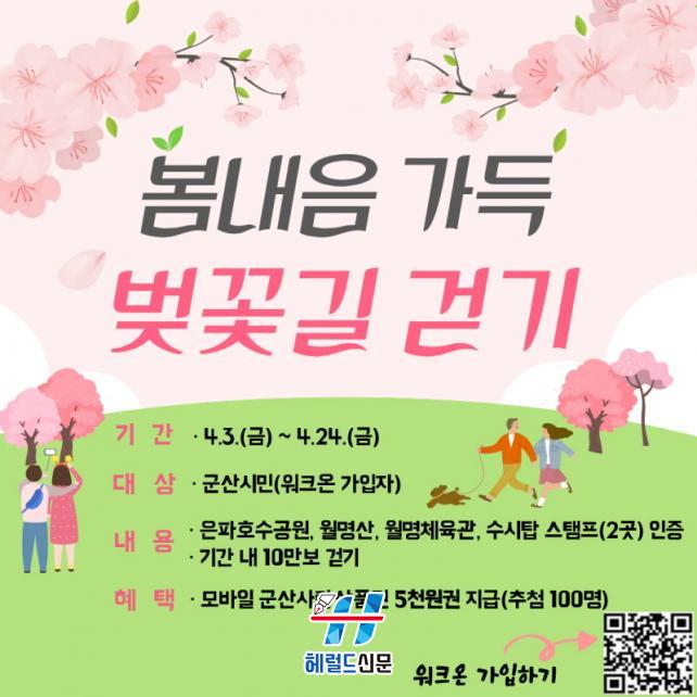 [Çì·²µå½Å¹® = ³ë½Â¾ð ±âÀÚ] ±º»ê½Ãº¸°Ç¼Ò(¼ÒÀå ¹®´ÙÇØ)°¡ º½Ã¶ ½Ã¹ÎµéÀÇ °Ç°ÇÑ »ýȰ½À°ü Çü¼ºÀ» À§ÇØ ¿À´Â 4¿ù 3ÀϺÎÅÍ 24ÀϱîÁö 3ÁÖ°£ ¡®º½³»À½ °¡µæ, º¢²É±æ °È±â¡¯ 縰Áö¸¦ ¿î¿µÇÑ´Ù.