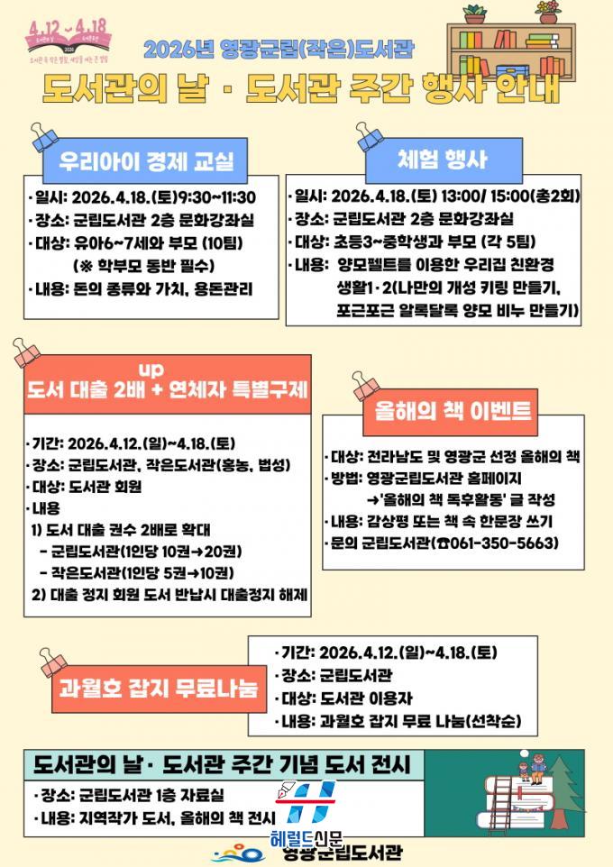 ¡®µµ¼°ü ¼Ó ÀÛÀº Æîħ, ¼¼»óÀ» ¿©´Â Å« ¿¸²¡¯À̶õ ÁÖÁ¦·Î ±º¹ÎµéÀÇ Âü¿©¸¦ È®´ëÇϰí, µµ¼°üÀÇ °ø°øÀû °¡Ä¡¿Í ¿ªÇÒ¿¡ ´ëÇÑ ÀνÄÀ» ³ôÀ̱â À§ÇØ ¸¶·ÃµÈ µµ¼°ü ÁÖ°£ üÇè ÇÁ·Î±×·¥ ¡ãÀ¯¾Æ¿Í ºÎ¸ð ´ë»ó ¡®¿ì¸® ¾ÆÀÌ °æÁ¦ ±³½Ç(6~7¼¼)¡¯ ¡ã¡®¾ç¸ðÆçÆ®¸¦ ÀÌ¿ëÇÑ ¿ì¸®Áý ģȯ°æ »ýȰ¡¯ ¿Ü ¡ãÁö¿ªÀÛ°¡ µµ¼ Àü½Ã ¡ã¿ÃÇØÀÇ Ã¥ °¨»óÆò À̺¥Æ®¸¦ ÁøÇàÇÑ´Ù.